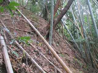 | 2郭北側の段差、その脇に竪堀がある。 | |