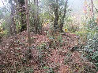 3郭の先端下にはテラス状の小郭があり、さらにその下にも郭が存在している。その先にも尾根があり、平場がありそうなのだが、今回はそちらの方までは確認していない。