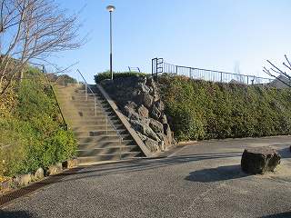 | 北麓にある模擬天守状の建物。 | 北側の入り口脇に城址碑が建てられている。 |