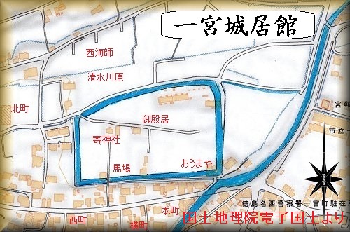 後に徳島城を築いて移って行くと、一宮城も御殿居も、その重要性を失っていくこととなる。