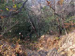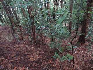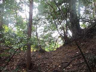 | 1郭北側の堀切。 | 西側の下方は竪堀状に削られている。 |