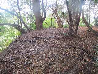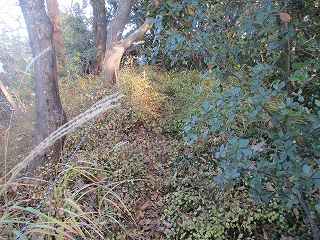 | 下の腰曲輪。 | 1郭堀切に面した部分は若干、土塁状になっている。 |