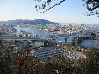 城山の比高は40mほどであったが、ここからの眺望は素晴らしく、園瀬川と新町川とが合流する地点および津田港をよく見ることができ、水運の要衝を抑える位置にあったということが理解できる。