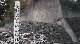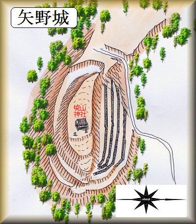 神社の東側には城址碑が建てられている。城主の子孫である矢野氏によって建立されたもののようで、そこには矢野氏の事績について書かれている。