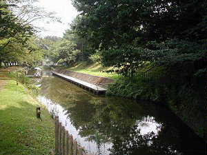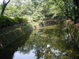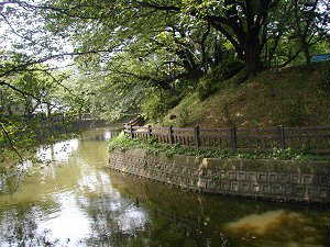 それにしても、市街地の中でこれだけの堀を残していて、よく藪蚊が大量発生して、近所の苦情の種にならないものだという気がした。堀際を歩いていると時々「ザーッ」という大きな音がする。何かと思ってよく見ると、本丸の堀に水を排出している。どうやらこうして水を循環させることによって、ぼうふらが湧かないようにしているらしい。やはり自然のままではこういう堀は維持できないのであろう。
