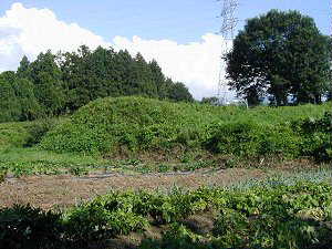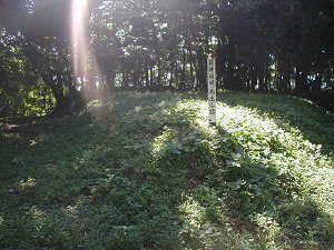 二の丸の櫓台らしき高まり。外側の畑は堀跡であると思われる。この部分の堀の段差は郭外側からの深さ1m、幅5mほどで、おそらく泥田があったのではないかと思われる。