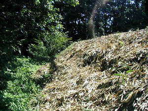 中城の土塁を郭内側から見た所。こちら側からでも2〜3mほどの高さがある。