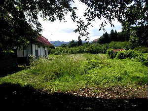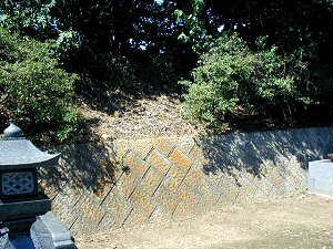 内堀があったと思われる場所。埋められてしまったらしく、痕跡もほとんど分からないが、この手前の断崖付近の部分に土塁が一部残っている。