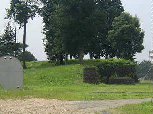 わずかに残る本丸の土塁。向井千秋記念の科学館の脇にぽつんと残っている。図の(い)の辺りの土塁である。周囲はグランドになって、すっかり地勢がならされてしまっている。
