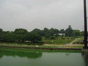 城沼越しに城址方面を見てみた。公園としてきれいに整備されすぎていて、城郭としての面影はかえってイメージしにくくなっている。