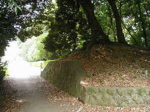 土塁南側の切れた部分。こちらが本来の虎口であろうか。この内側に古墳が1つあるが、見ようによっては、これを利用して内枡形が造られていたかのようにも思える。