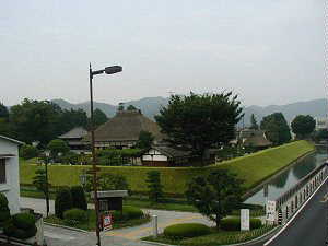 歩道橋の上から見た所。まるで箱庭のようだ。しかし、方形館の雰囲気がよく出ている。100m四方ほどの敷地内には、孔子廟、方丈、庫裏、衆寮、書院などが配置されている。