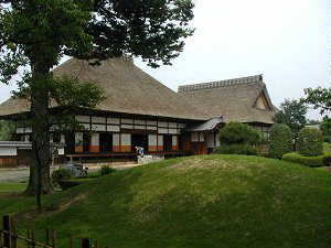 写真の建物の左側が方丈、右側が庫裏である。藁葺きのかなり大きな建物である。昔の武士の館の建物も、このような感じであったのかもしれない。手前は庭の築山で、庭園も復元されている。この方丈で、学校の講義や各種の行事が行われていた。