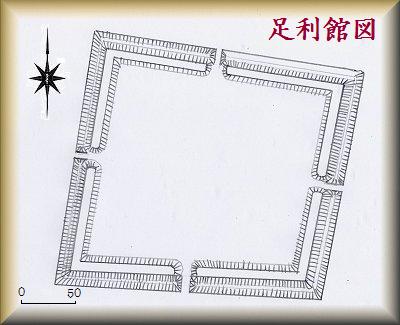足利氏の居館は現在、鑁阿寺(ばんなじ)の境内となっている。方200m弱の単郭の居館で、現在でも周囲には幅4mほどの堀と土塁が残っている。足利氏がこの地方で影響力を持ち始めるのは平安時代の末期頃からで、この館の原型もその頃には出来あがっていたのではないかと想像される。一般に武士の方形館というと100m四方程度のものを連想することが多いが、ここは200mほどとかなり大きい。それはそのまま足利氏の勢力を反映しているものではないかと思われる。