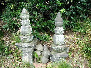 城の入口脇には壊れかけた宝篋印塔が2基、草むらの中にたたずんでいる。城主であった長尾氏に関連したものか。