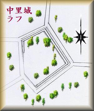 方100mほどで五角形の居館であったらしい。東北ではなく西の角が欠けているのがめずらしい。