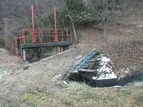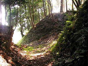 | 1郭北西側の横堀から見た1郭城塁。 | その横堀の下の帯曲輪。 |