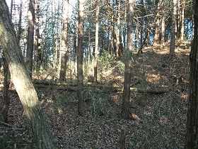 その下には数段の腰曲輪の名残のような地形がある。といっても自然地形のようにも見える。写真の部分も城塁のように見えたのであるが、こうして写真に成ってみると、自然地形だったのかなあ・・・・という感じである。