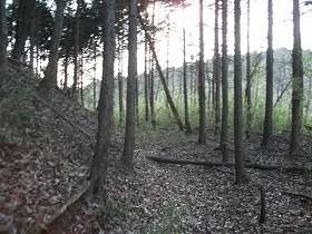 続いて三の堀(お)。二の堀と規模はたいして変わらないが、こちらの方がやや小降りであろうか。これも堀というより、切通しの道と言った方がぴったりくる。