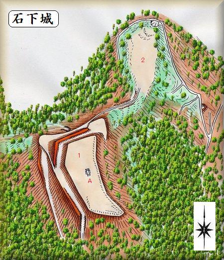 石下城は、それほど手の込んだ城ではなく、古いタイプのものか、あるいは急造された印象の強い構造の城である。とはいえ、1郭2郭ともども、そこそこの広さがあり、かなりまとまった人数を収容することも可能である。