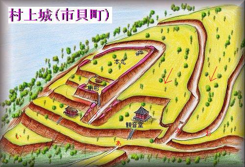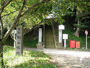 村上城は市貝町の観音山にある。城も県指定史跡になっているのだが、同じく史跡の観音堂などもあるので、付近の道路のあちこちには案内板が建っている。したがって、それらの指示通りに行けばすぐに城にたどり着くことができるであろう。