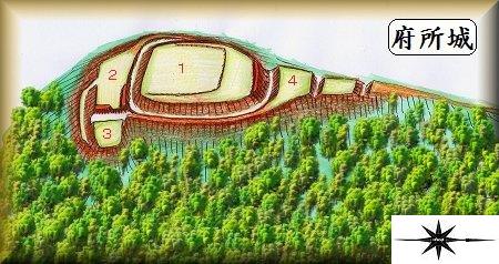 府所城は、黒川の東側の河岸段丘上にあったらしい。現在この地には「帝国繊維」の工場が建っており、城郭としての遺構はすべて隠滅してしまったものと思われる。