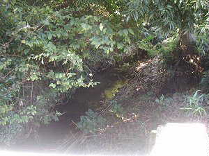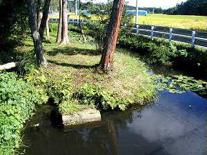 上の堀を越えるとすぐに内堀がある。現状では堀というよりも、溝、あるいは水路といった趣であるが、現在も水が湛えられている。東側の武子川の水を取り入れているのであろう。