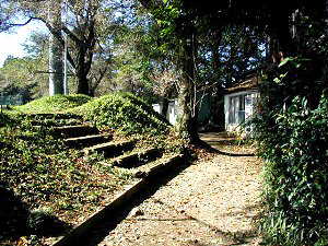 周囲の崖がコンクリートで固められているのだが、北側下から、郭内の稲荷神社に上るための階段がある。