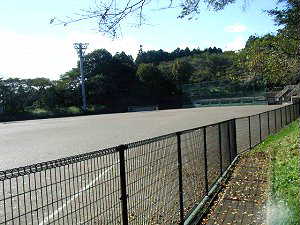 テニスコートに降りていく辺り(え)の部分。これが登城道だとすれば、右手の張り出しは横矢の為のものとも見えるが、実際は改変が著しいので、断定的なことは避けておく。