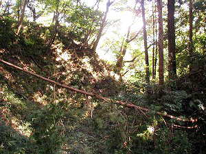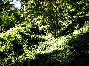 これも本丸東側の土塁。この土塁を見てみると、城本来のものという感じがするのであるが、真実はどうなのであろうか。