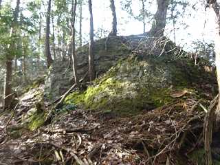 ということで、その辺りから斜面に取り付いて、尾根を目指してよじ登って行くことにする。この城山は比高100mほどでそれほど高くはないのであるが、意外にもあちこちに岩が露出していたりする。だから、登る際にはちょっと注意が必要である。