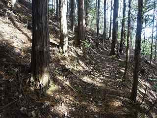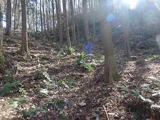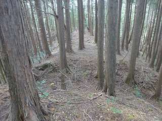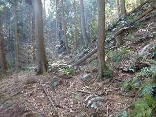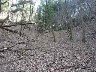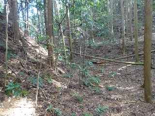 | 1郭東側下帯曲輪の横堀状になっている部分。 | 4の尾根にも段々の郭が造成されている。 |