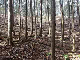 | 1郭下の枡形内部。 | 1郭内部。尾根状の狭隘な地形である。 |