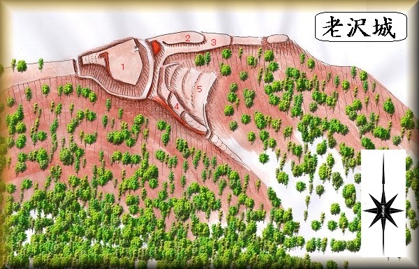 老沢城は、これだけの城であり、規模は小さい。すぐ北側には久我城があり、久我城の背後の監視のために築かれた砦といった性格のものであったと思われる。