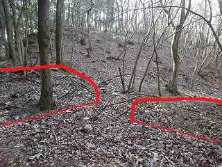 | 2郭の城塁。 | 2郭北側側面部の帯曲輪。 |