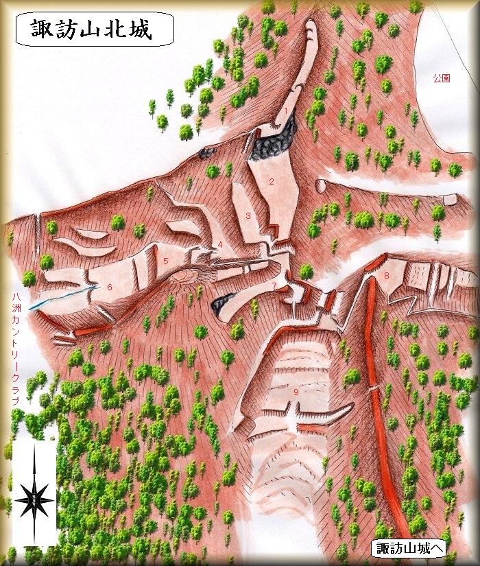 諏訪山城はだいぶ以前に訪れていたのであったが、その北側にもこのような城があることは、その時には気づかなかった。