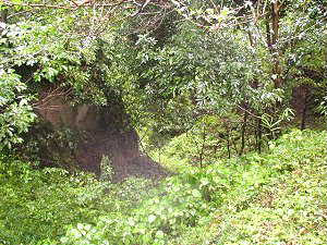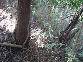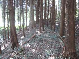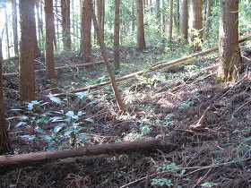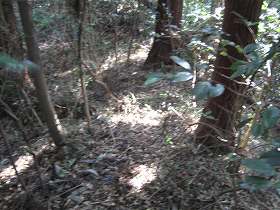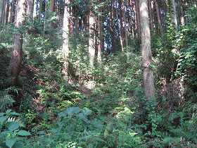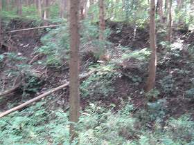 | 健徳寺との間の切り通し。これも堀切であったものだろうか。 | 大堀切。といっても夏場ではこの通りで、写真ではさっぱり分からない。 |