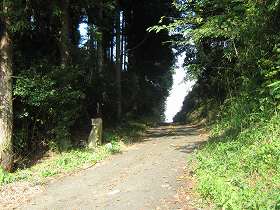 というわけで、車を神社の入口辺りに置いて参道を通って行った。参道の東側には「立入らないように」という看板が出ている。東側が崖になっているようで、そのために注意を呼びかけているものらしい。