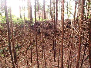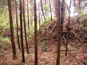 この城址では椎茸の栽培が行われている。そのため見学には地主さんの許可が必要であるので、ご注意を!
