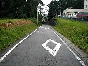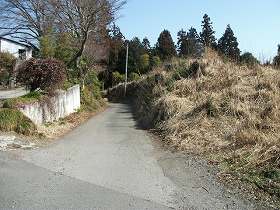 岡本北小学校の脇の切通し道。ここが城の一番外側の堀の跡と思われる部分である。現状では深さ2m、幅6mほどであるが、本来はもう少し深かったのではないかと思われる。