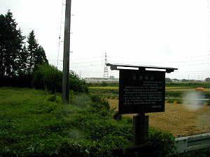 (あ)の辺りにある案内板。この脇の土手も2mほど落ち込んでいて、かつての堀の跡であったかと想像はできる。