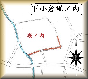 宇都宮市小倉町1544番地のお宅が「堀ノ内」と呼ばれており、近くまで行ってみると、しっかりとした土塁が南面にあるのが見えている。南側の虎口には門が建てられており、いかにも城館的な光景である。