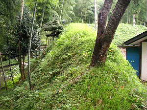 本丸より一段低い中丸の北側にある土塁。一見櫓台のように見えるが、ただの土塁であり、櫓を建てるようなスペースはない。この北側の下に2の丸がある。