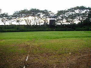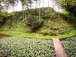 上の写真を南西の水堀側から見た所である。写真の部分は街道に横矢を掛けるように久ランクしており、この塁上には城壁が連なっていたのではないかと思われる。