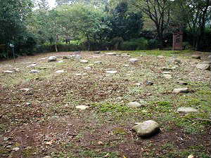 芭蕉館の東側の下にも郭と思えるスペース(お)がある。そこには礎石跡のようなものが残されているのだが、ここには番所のようなものが置かれていたのかもしれない。