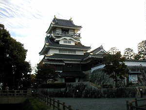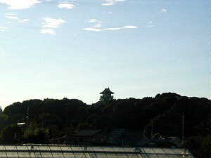 天守に登ると三日月堀の形がよく分かる。これを上から見られるというだけでも、模擬天守の存在意義がある。
