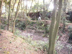 1郭下の堀切。この堀底からさらに一段下の郭に行く道がついている。