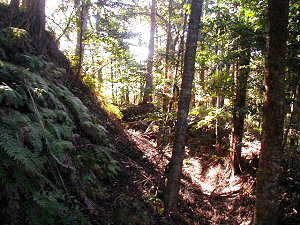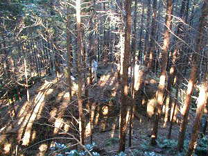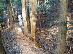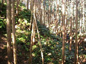 この尾根はずっと北側に延びているが、これ以上先には遺構は特にないようである。この尾根にはあまり防御の必要を感じなかったのであろうか。
