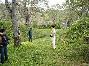 | 表門の外側の枡形を隊員たちが検証しているところである。外側の門の位置をどこに置くべきかなどについて検討しているのである。 |