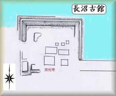 長沼城の方は遺構が壊滅状態にあるが、その南側の宗光寺の周囲には方形の堀の跡がはっきりと残されており、こちらが長沼城に移る前の古い館の跡であったのではないかと言われている。